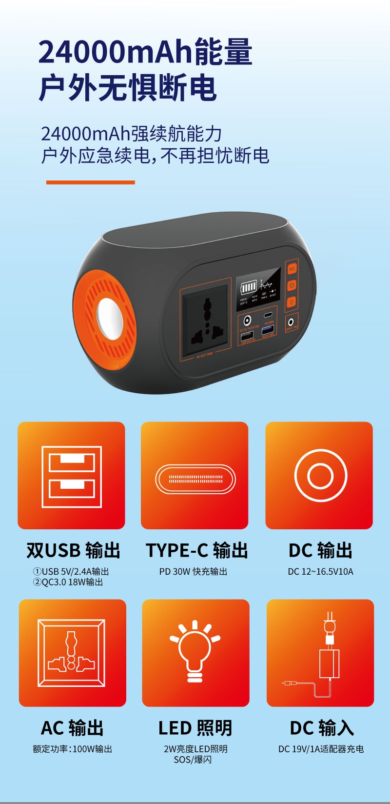 小容量戶外便攜應(yīng)急移動(dòng)電源100W手機(jī)平板多功能儲(chǔ)能電源工廠批發(fā)